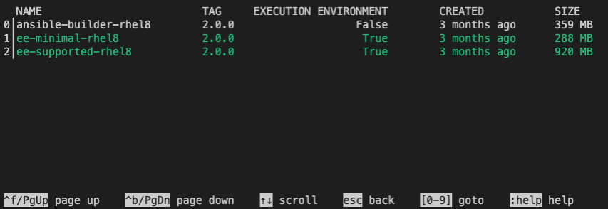 $ ansible-navigator images