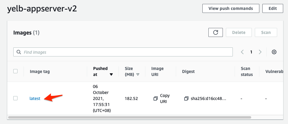 - To do so, create a new container image with the updated code and push it to an AWS ECR repository with following command: