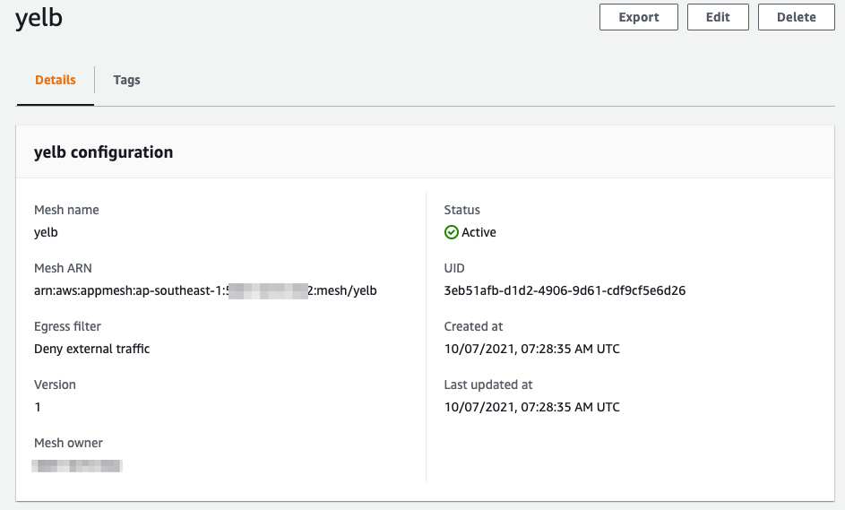 - From now you can check on AWS Console to see that App Mesh was created properly: