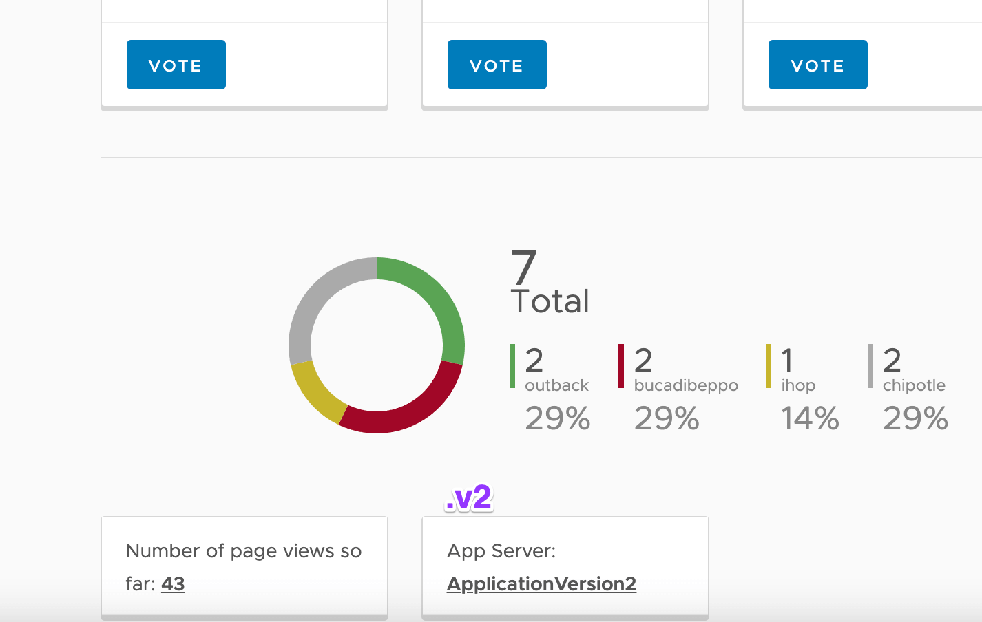 - Now you can keep refreshing your browser and the new version yelb-appserver-v2 deployment serves all the requests !