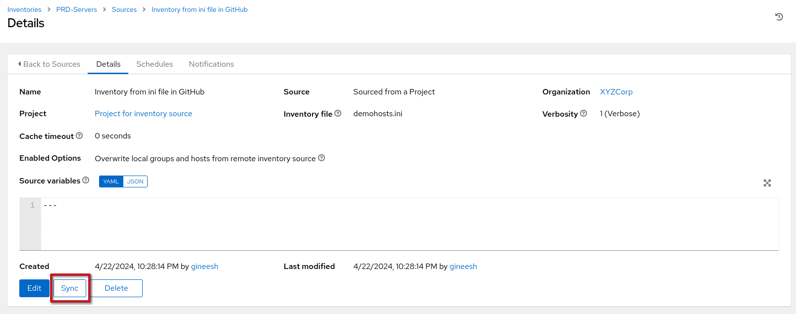 Sync the inventory source