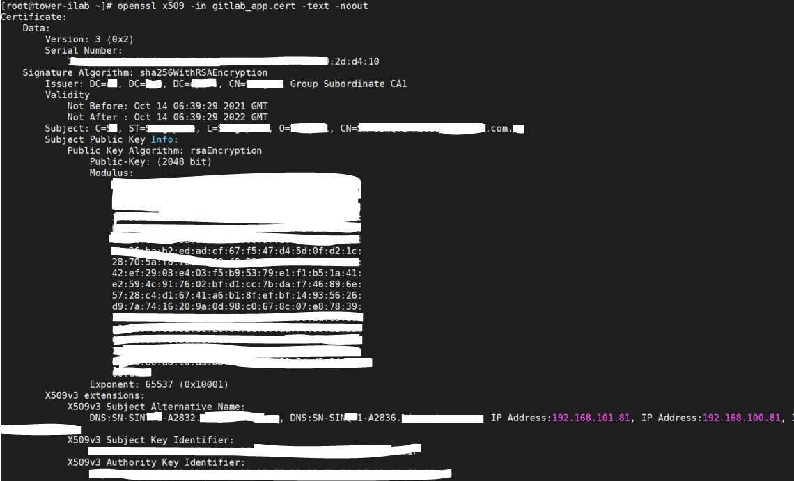 Share the CSR (e.g., gitlab_new.csr) with the certificate signing authority for certificate issuance.