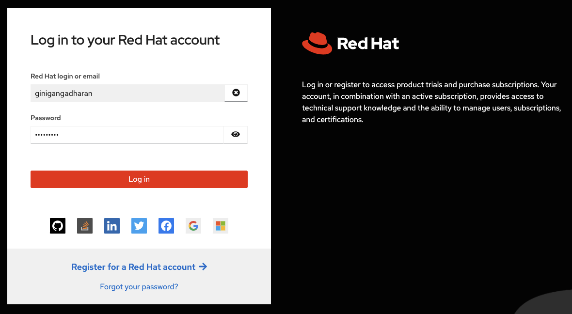 Once activated, login with your Red Hat account