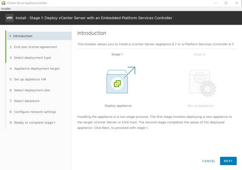 In below demo, I have an physical server already installed with ESXi 6.7 (VMware vSphere Hypervisor 6.7) and I am installing VMWare vCenter as a Vitual Machine inside same host. (We don’t need a dedicated physical host for vCenter server). Installing ESXi host is simple an straightforward as you can download the ISO and boot and install like any other linux system.