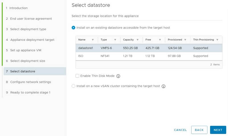 Choose data store to save the VM. (I have already added NFS datastore in ESXi host)