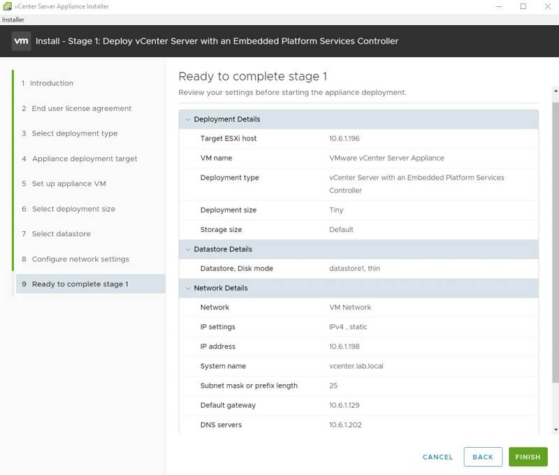 Disclaimer : This demo is for explaining the steps to cover VMWare vCenter installation in a lab or test environment. You must consider recommended prerequisites and configurations for production level clusters.