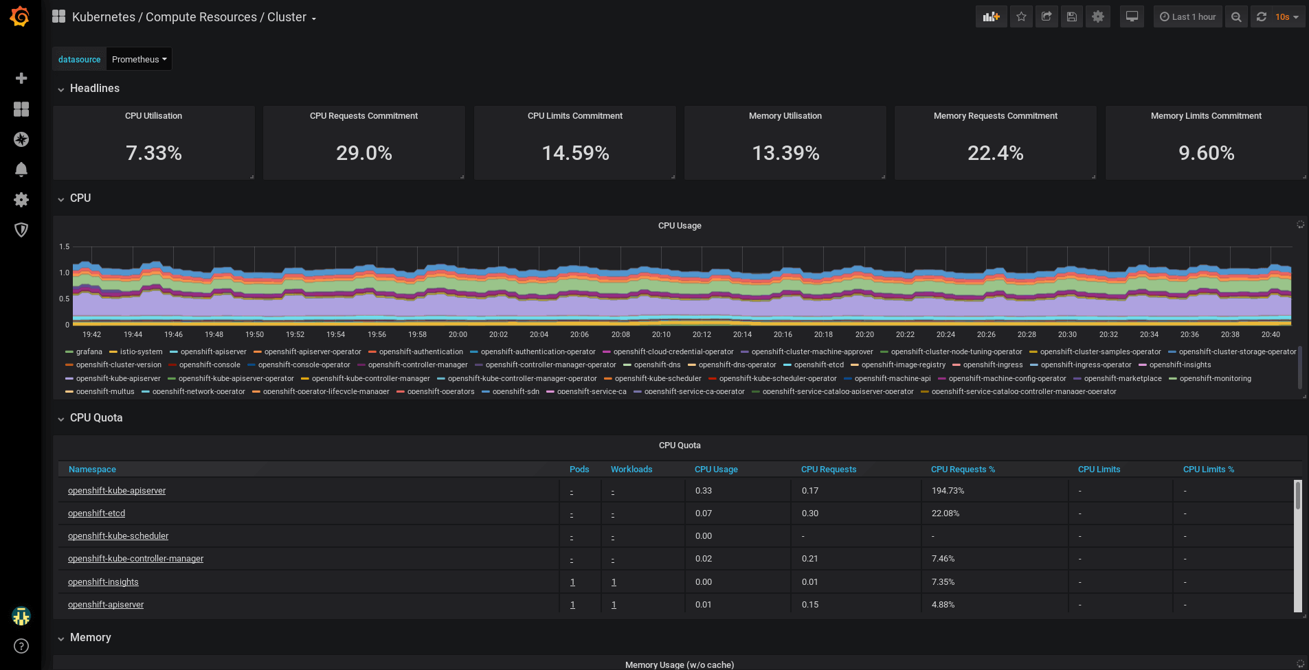 OpenShift Container Platform includes a pre-configured, pre-installed, and self-updating monitoring stack that is based on the Prometheus open source project and its wider eco-system. It provides monitoring of cluster components and includes a set of alerts to immediately notify the cluster administrator about any occurring problems and a set of Grafana dashboards. The cluster monitoring stack is only supported for monitoring OpenShift Container Platform clusters. and it is Read-Only. Means, Administrator can’t write custom queries, and create custom dashboards in Grafana.
