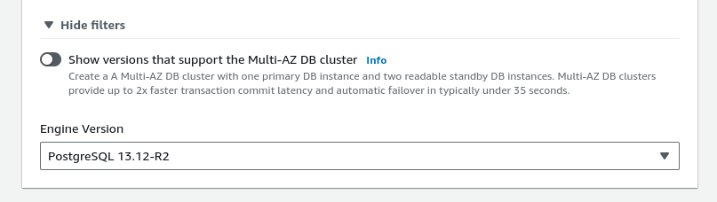 Depending on your needs, you can opt for a Single DB instance or a Multi-AZ DB Cluster for production workloads.