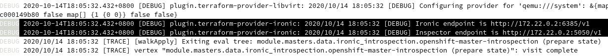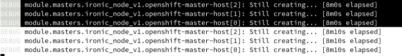 - At the same time, the installer keep connecting to the bootstrap ironic API endpoint, and it will succeed once ironic API is ready and RHOCP node will be powered on and continue the kickstart process.