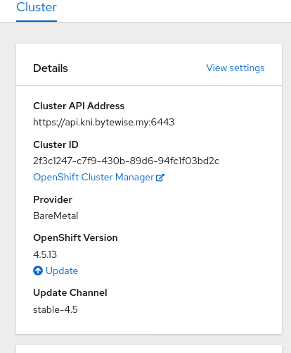 | openshift-master-0 | 8 | 16GB | 50 GB | RHCOS 4.5 |
