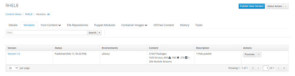 Create a content view and enable the repositories inside content view. Content -> Content Views