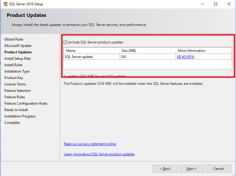That’s it! No more you are required to manually start every single Service Pack then Cumulative update and Security Hotfix you need! Now you just put all of those in a folder and “point” SQL Server’s setup to that folder.