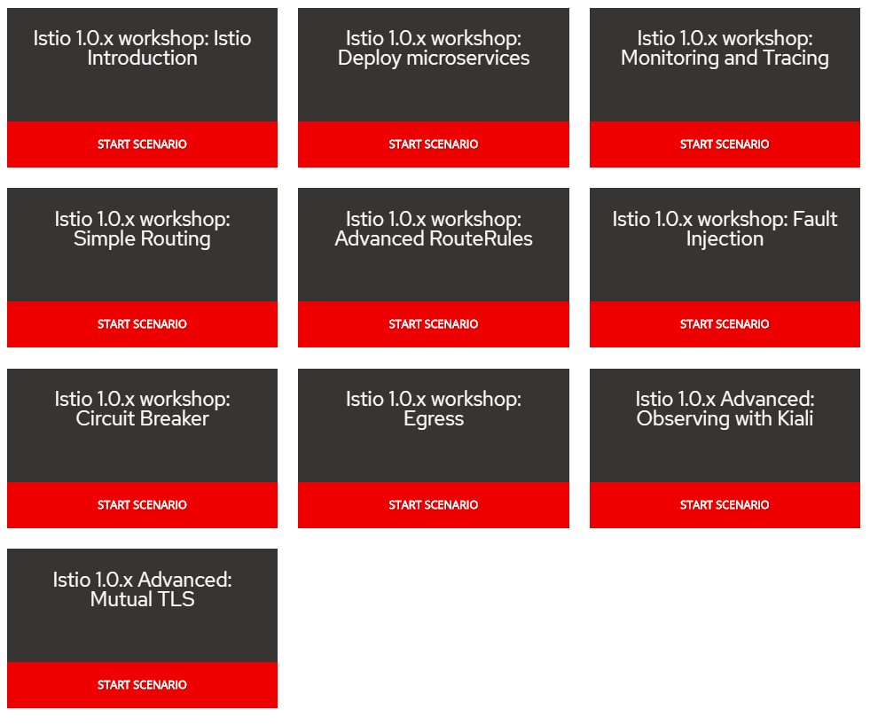 Then you will reach a page where you can learn Service Mesh with different scenarios as below.